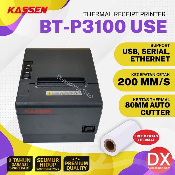 Printer Thermal Struk Kasir 80mm KASSEN BT-P3100 / BTP3100 USE Auto Cutter USB SERIAL ETHERNET (LAN)