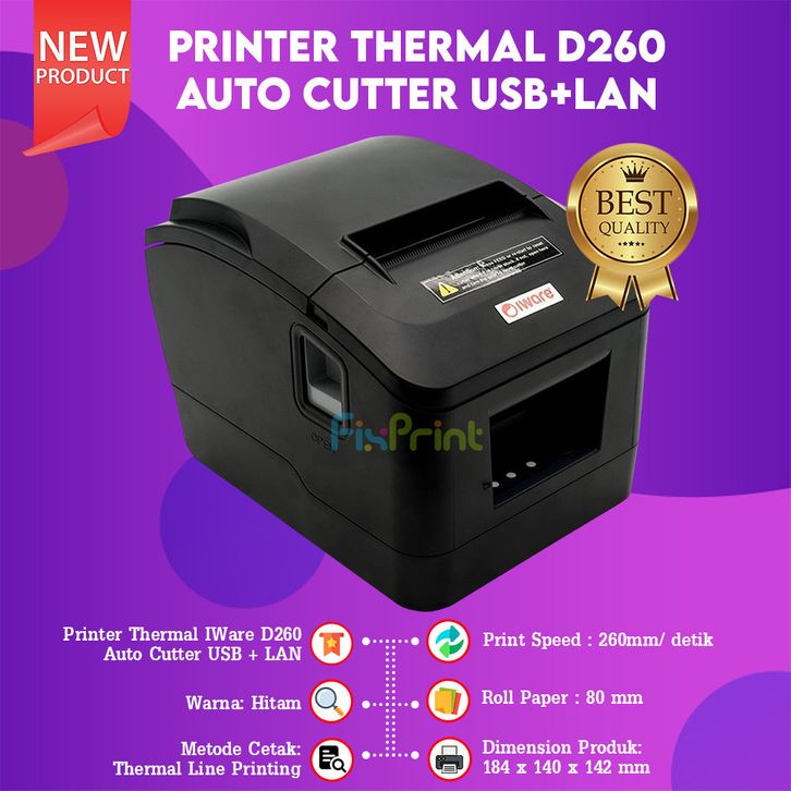 FixPrint Printer Thermal D260 Roll Paper 80mm IWare Printer Kasir Cetak LabelResi USB Bluetooth Wifi