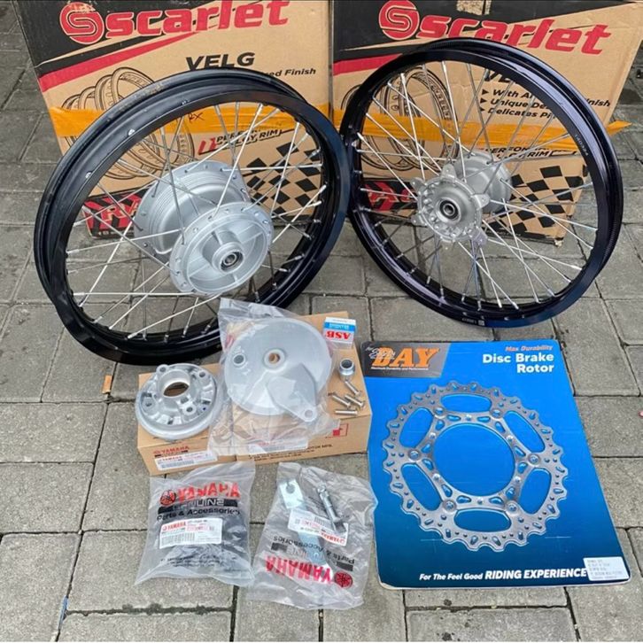 paket velg set tromol depan Yz250 set tromol belakang TS day /Rxking velg scarlet & TDR 160/185-17 set tinggal