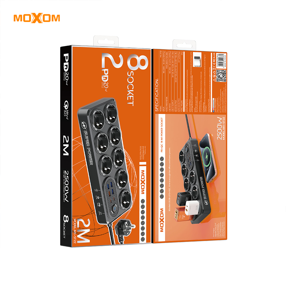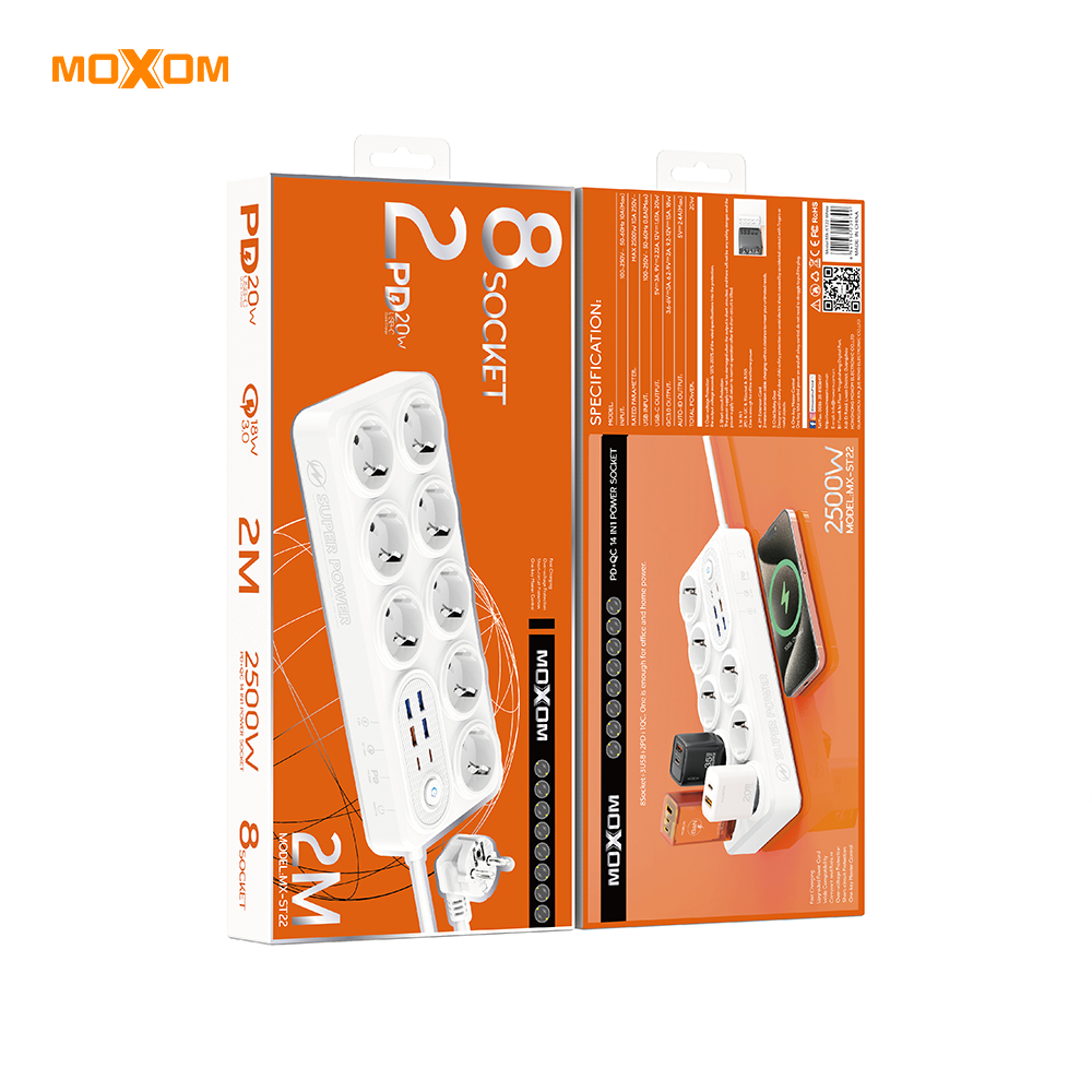 MOXOM SUPER POWER 8SOCKET 2PD 20W+4USB 1QC 18W2500W 2METER MX-ST22