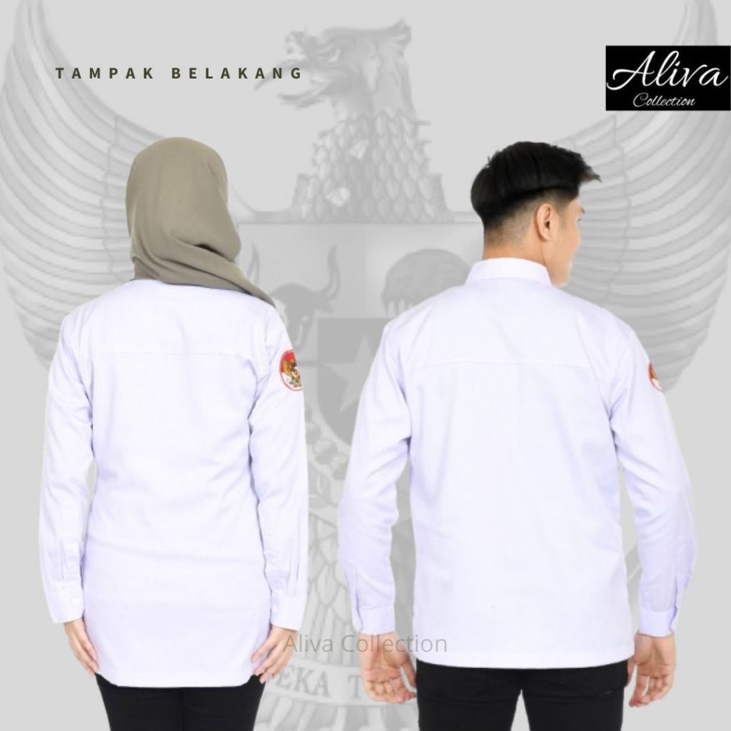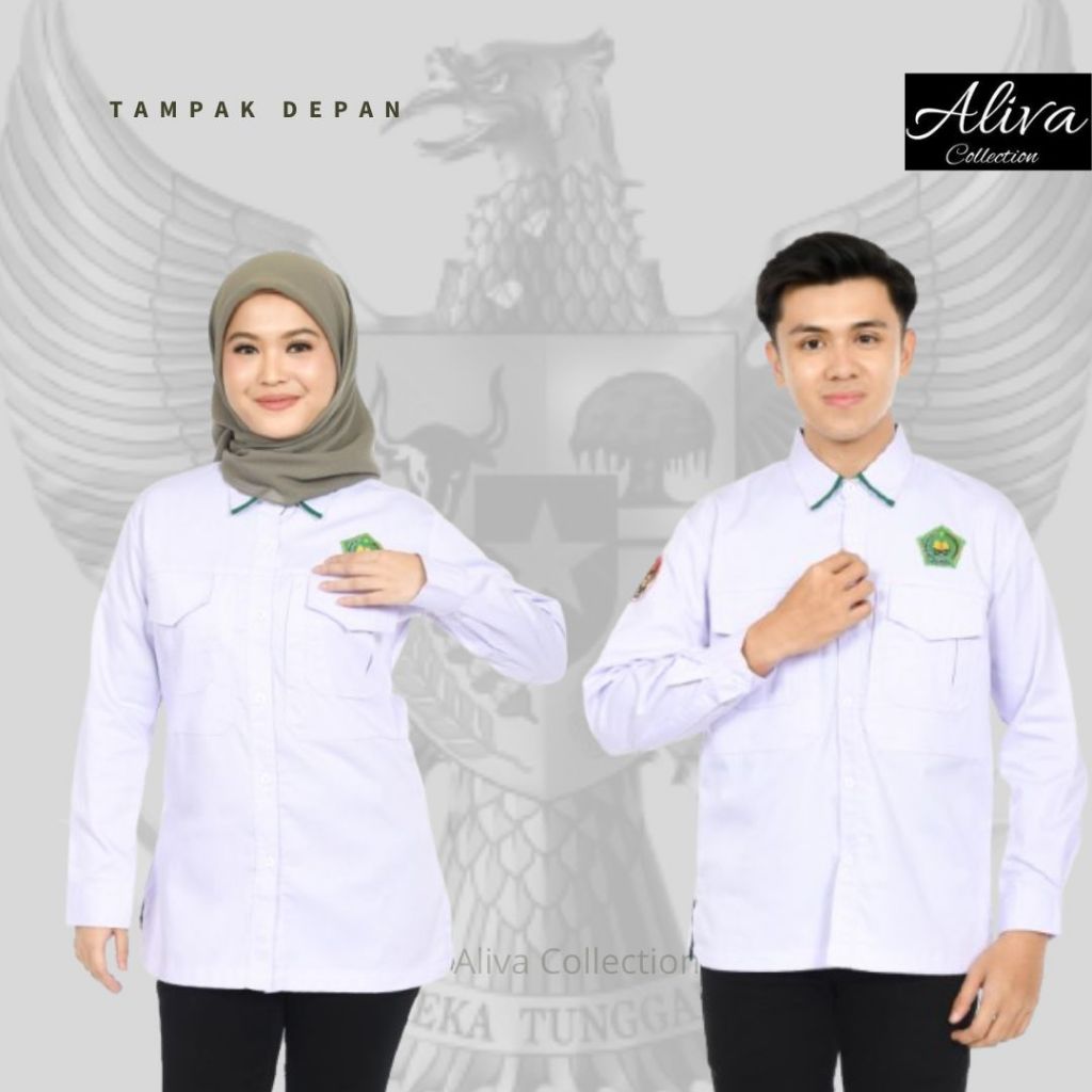 Seragam Dinas PDH Putih Kementrian Agama Kemeja Pria Kemenag Saku Zipper Lengan Panjang