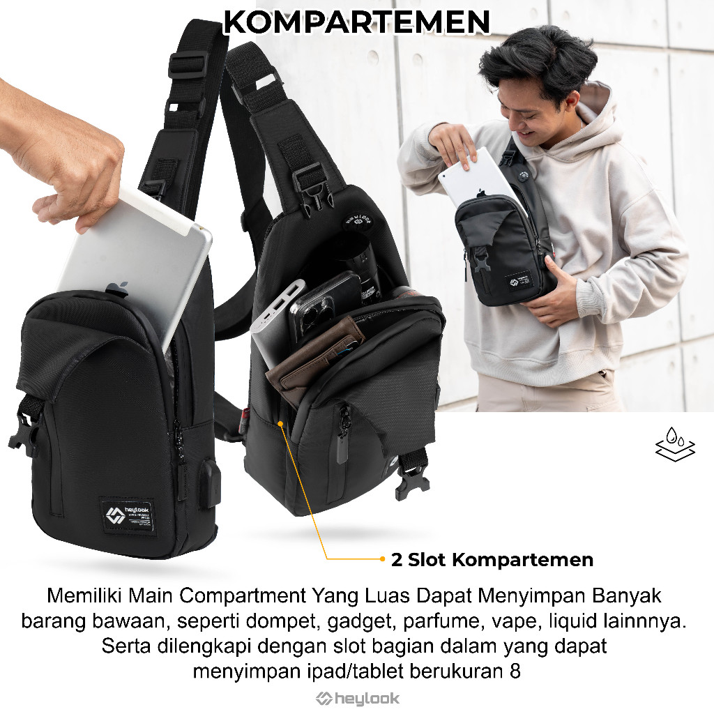 HEYLOOK - Tas Selempang Pria TREVOR Sling Bag Cowok Waist Bag Waterproof Shoulder Bag Anti Air Tas Slempang Crossbody Distro Terbaru