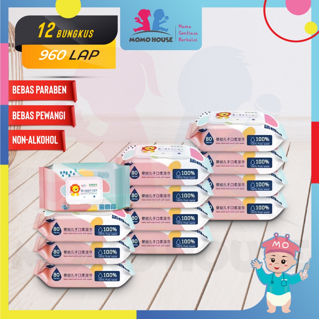 12 packs MOMO HOUSE Tissue Basah Baby Wipes Tisu Basah Bayi Tissue Basah Bayi Tissue Tisu Basah Tanpa pewangi