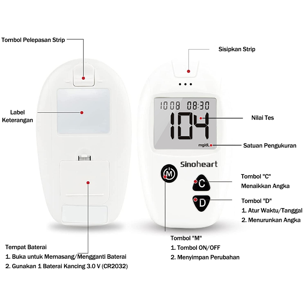 Gula Darah Sinocare Safe-Accu Alat Tes Gula Darah Instant Alat Cek Gula 200 Memori 50KIT