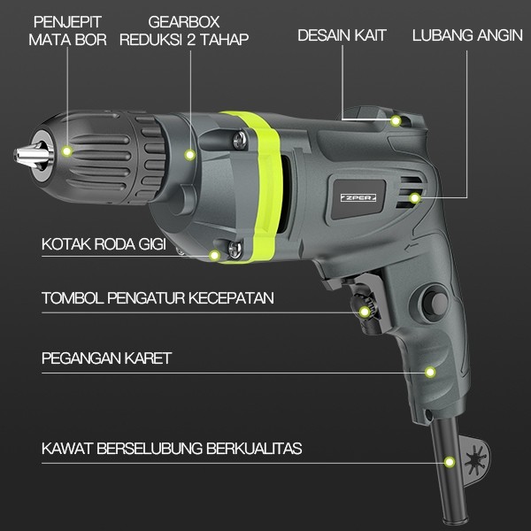 ZPER MESIN BOR 350W LISTRIK BOLAK BALI HAND ELECTRIC DRILL BERLAKU UNTUK 2-10MM MATA BOR ZP044