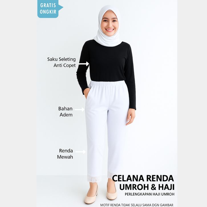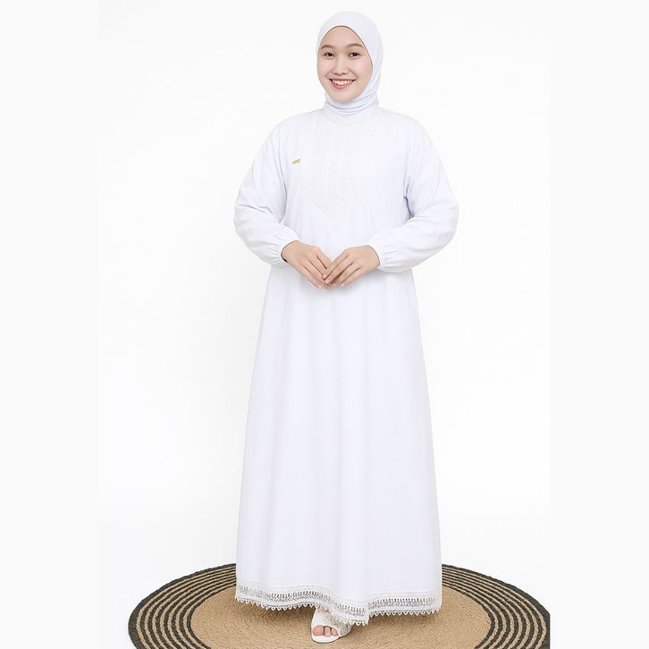 TERBARU Paket Perlengkapan Umroh & Haji Wanita 5in1 | Gamis + Bergo + Celana + Sarung Tangan + Tas Jumroh onegc