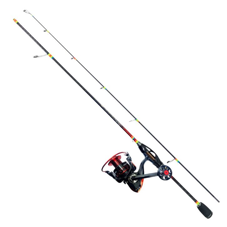 Joran Spinning 1 Set Joran Spinning Lure Action Light Tongkat Pancing Red Rainbow 2-6lb 1.65-1.98M Solid Carbon Fishing