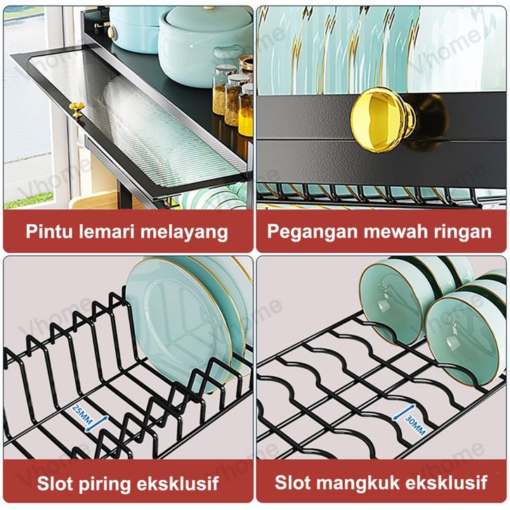 Vhome Rak Piring Wastafel kabinet dapur stainless steel multifungsi dengan tutup tahan debu