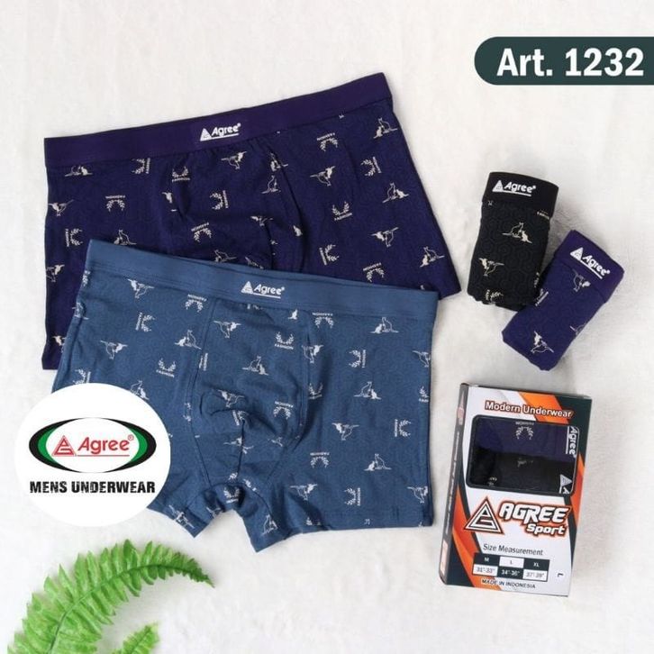 PROMO 3pc Boxer Agree 1232 Celana Dalam Boxer Pria Agree Sport CD Pria Agree Sport Boxer - Warung