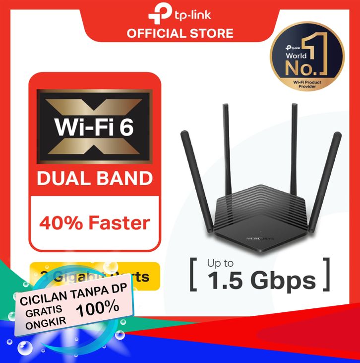 BARU - TP-LINK | MERCUSYS MR60X | AX1500 WIFI 6 ROUTER | DUAL BAND | GIGABIT PORT | 1500 MBPS WIRELESS