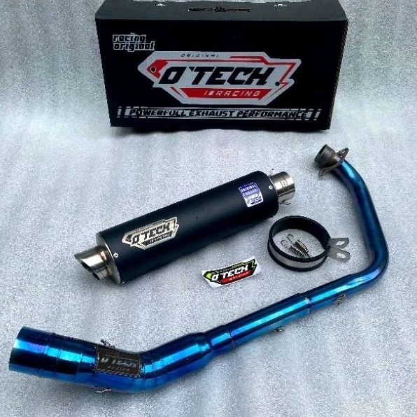 Knalpot Racing Original Otech Racing Long Blackdof Header Blue Pnp Satria Vixion Sonic Cb150r Cbr R15 Byson Dll