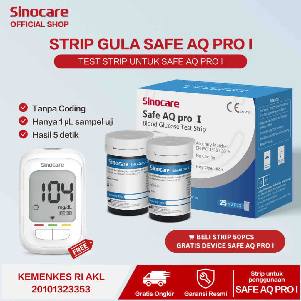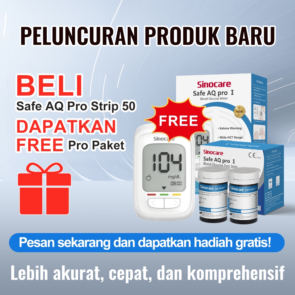 Alat Cek Gula Darah Sinocare Gratis Meter Safe AQ Pro I 50 Paket Alat Tes Gula Darah [PROMO]