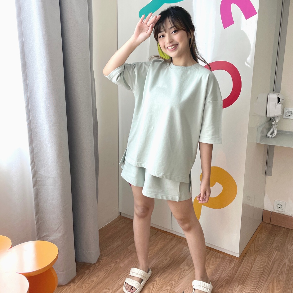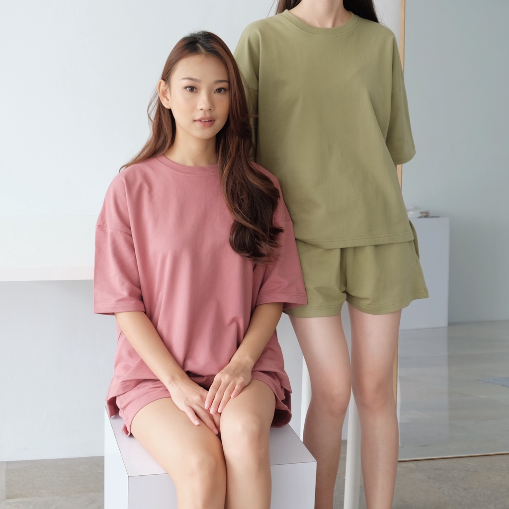 Setelan Wanita Dewasa Polos Bahan Baby Terry - Baju Santai Adem Atasan & Celana Pendek