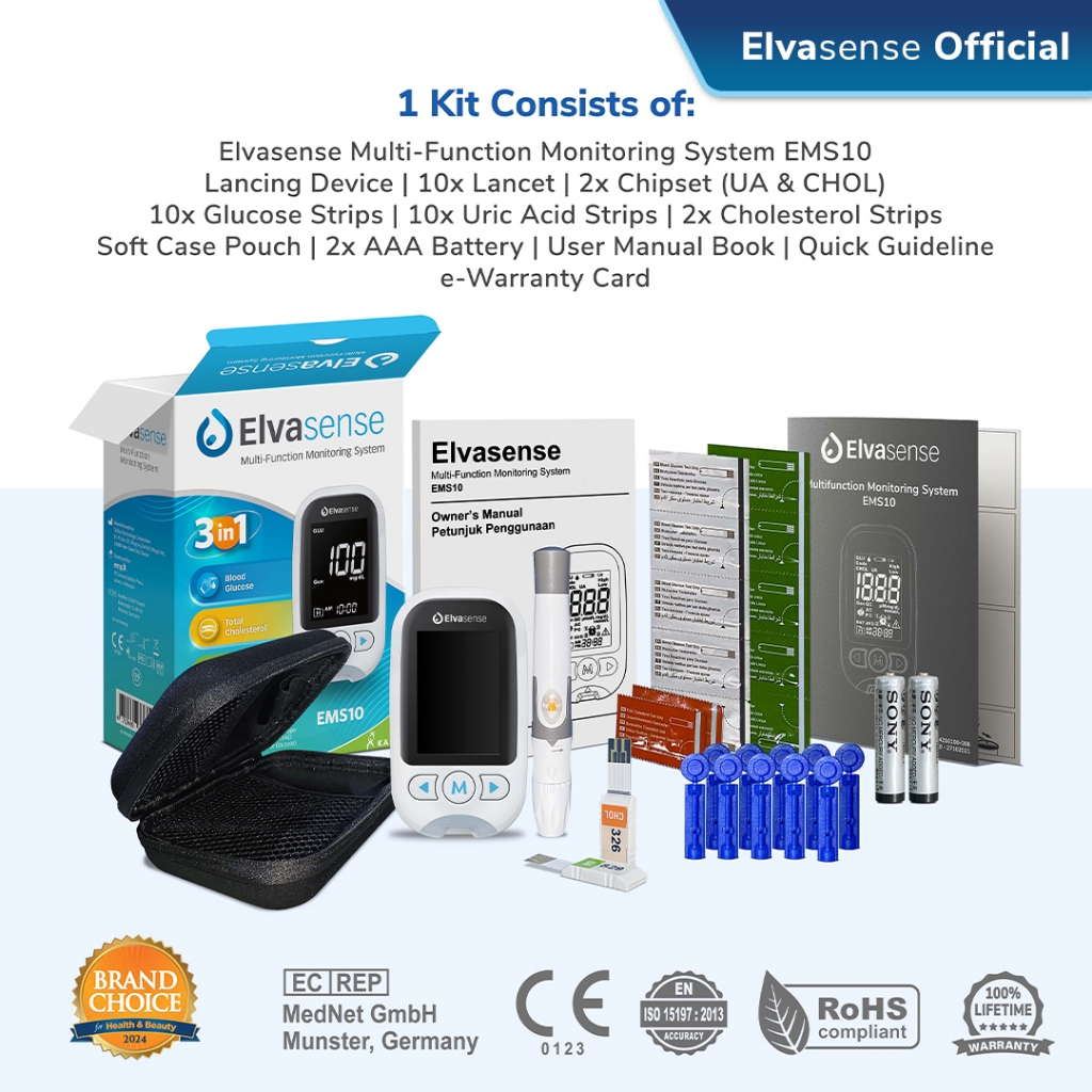 Alat Cek 3in1 Elvasense (Gula Darah, Kolesterol & Asam Urat)