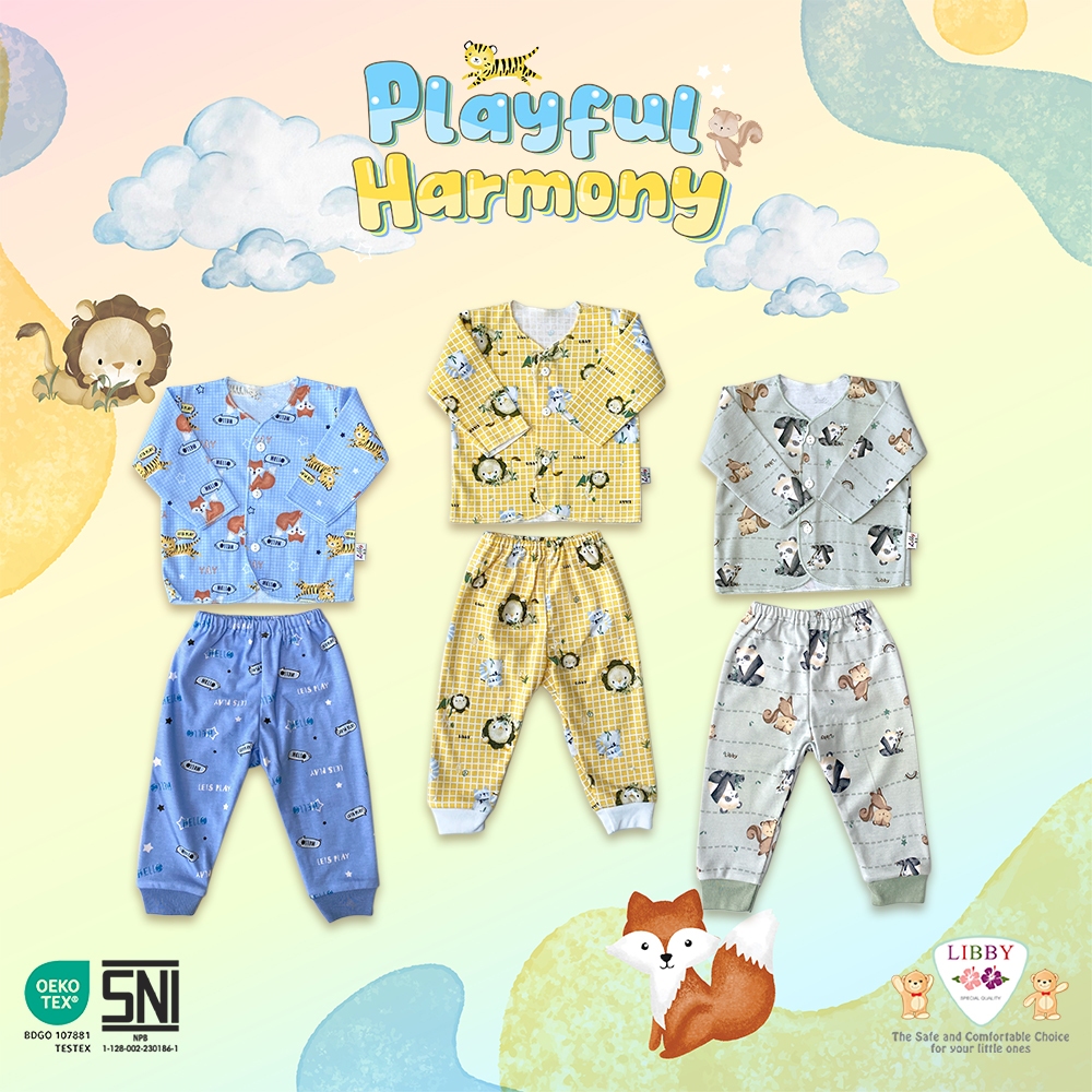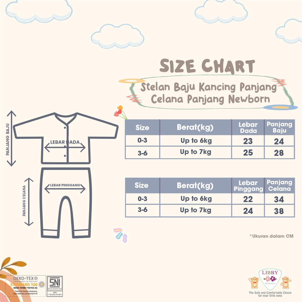 LIBBY Setelan Piyama Anak Laki Laki Perempuan Baju Kancing Panjang Newborn Bayi Motif Unisex (1 stel) | Fresh Dream | Pl