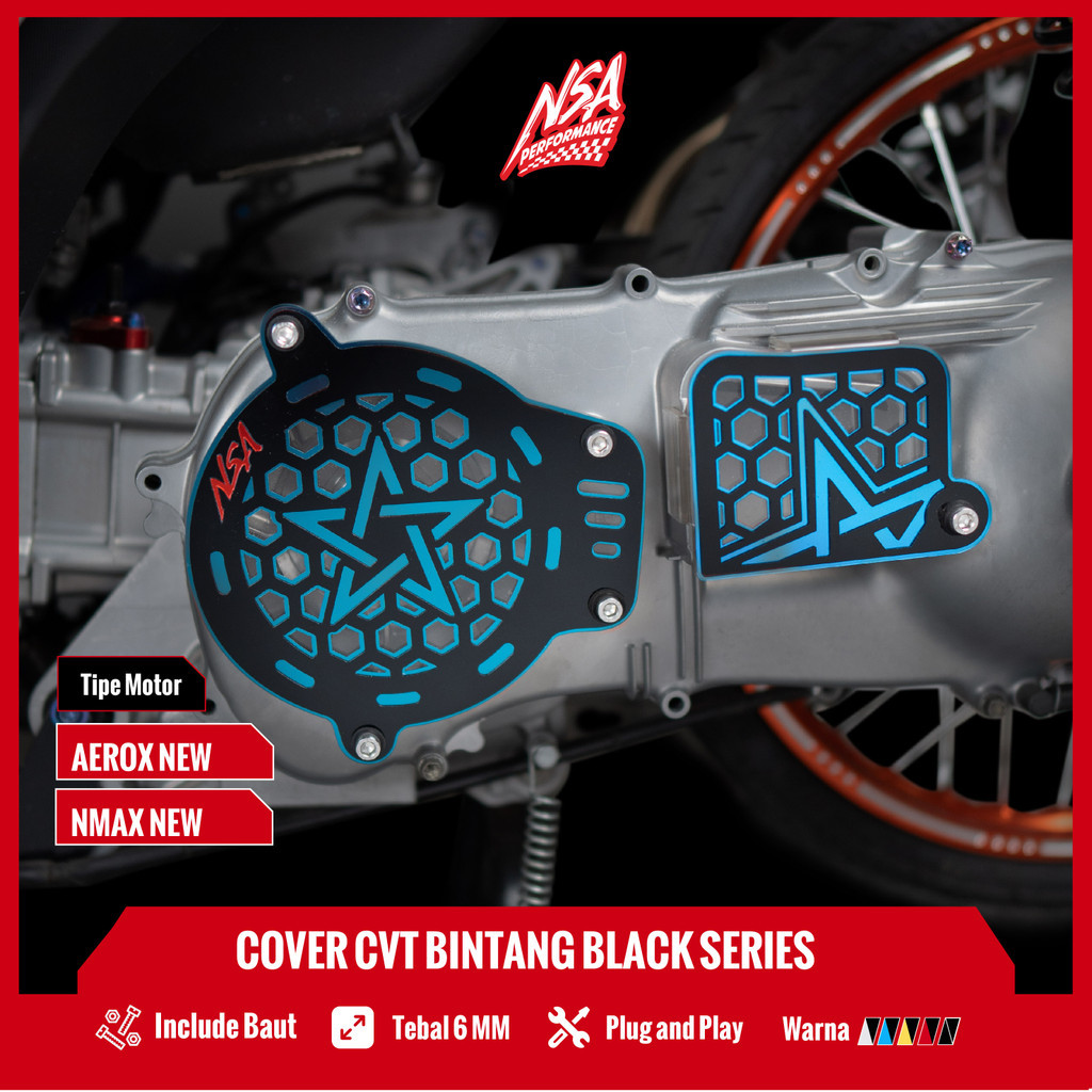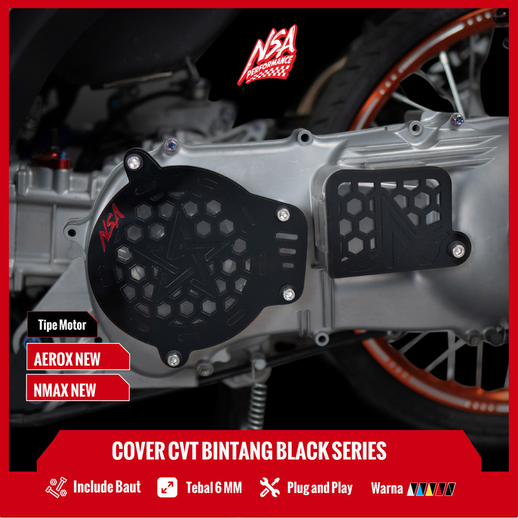 COVER CVT BINTANG BLACK SERIES YAMAHA Nmax Aerox Tutup Cvt Yamaha Aksesoris Motor NSA PERFORMANCE