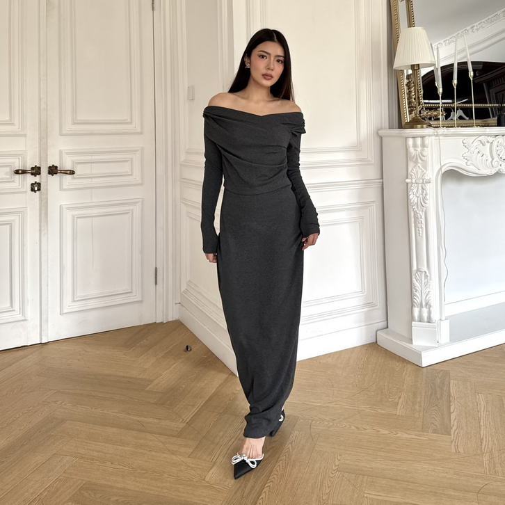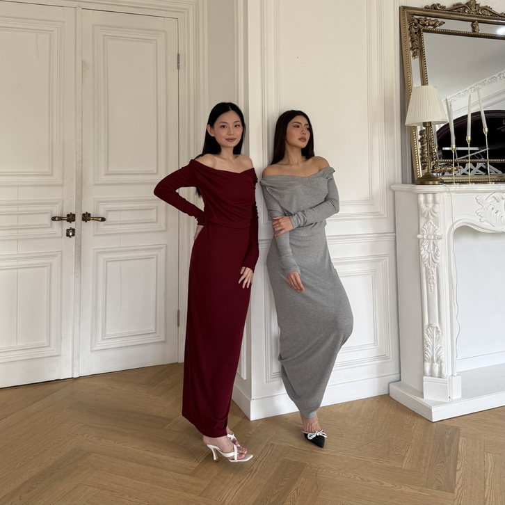 DRESS PRESS BODY WANITA TERBARU LONG DRESS OFF SHOULDER KOREAN