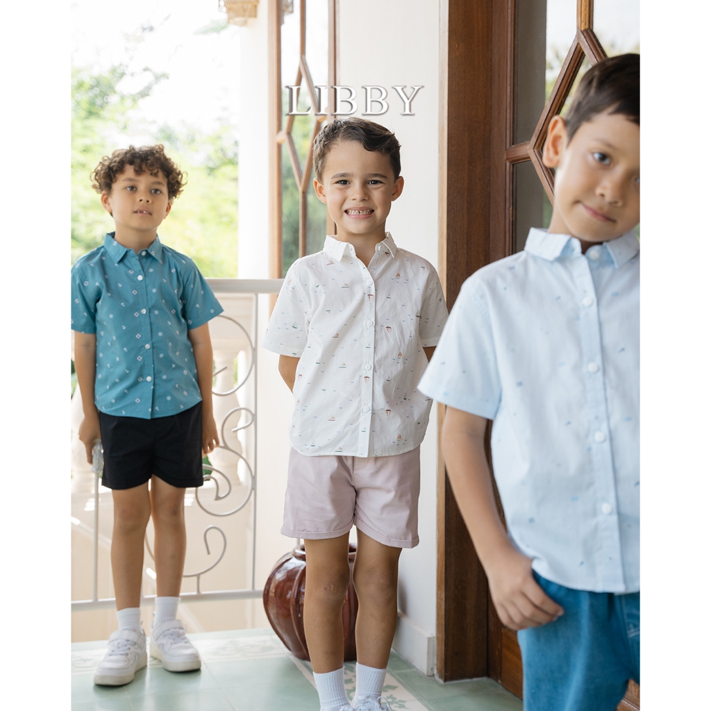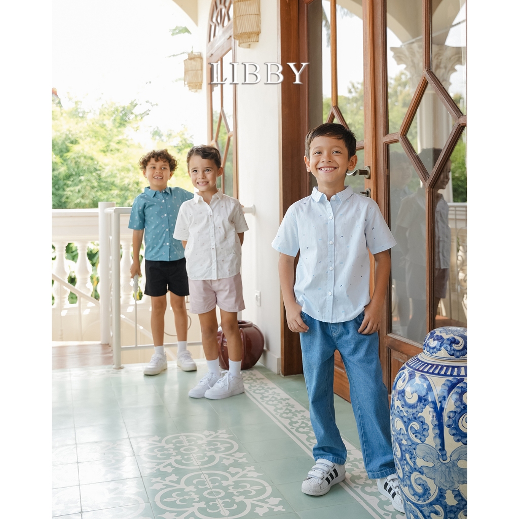 LIBBY Kemeja Anak Laki - Laki Motif Wooven Theo Shirt 9 Bulan - 14 Tahun (1PCS) - Kemeja Lengan Pendek Katun Motif Anak