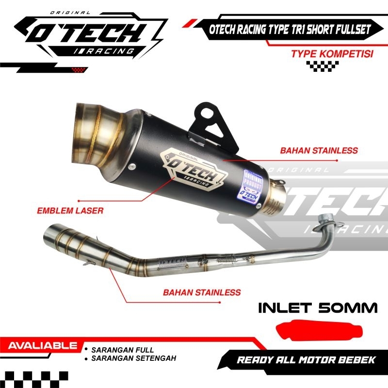 Knalpot Supra Vega Jupiter Revo Smash Shogun Blade Kharisma Dll Inlet 50mm Original Otech Racing Tr1 Blackdhof Fullset