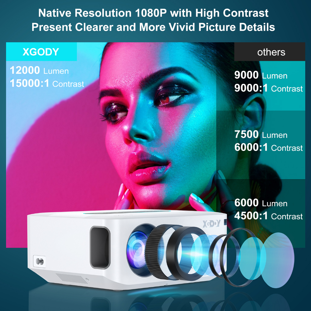 XGODY X1 Smart Proyektor LCD -Android 9 - FHD 1080P -Dolby Atmos -2GB+16GB -Auto Keystone - 460 ANSI