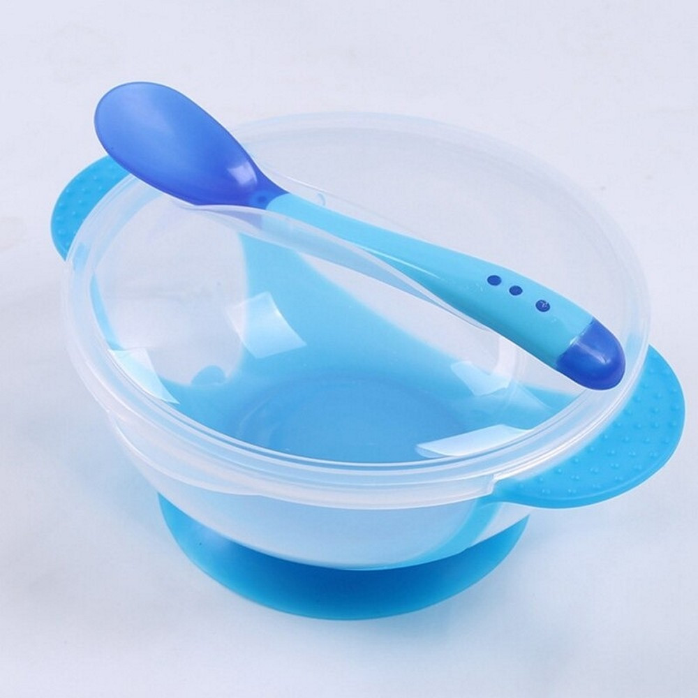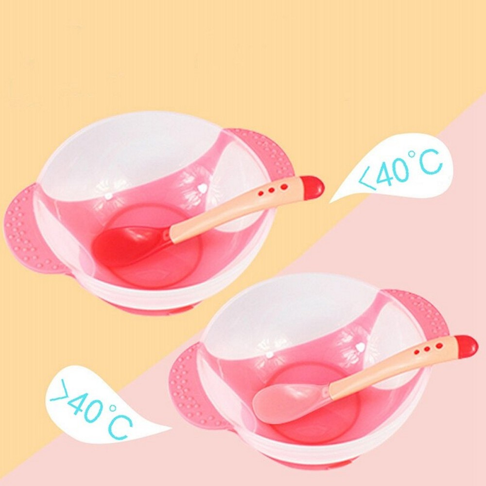 Set Mangkok Sendok Makan Bayi Silikon Anti Slip / Mangkok Makan Bayi dengan Sensor Panas Anti Tumpah Praktis Bayi Bahagi