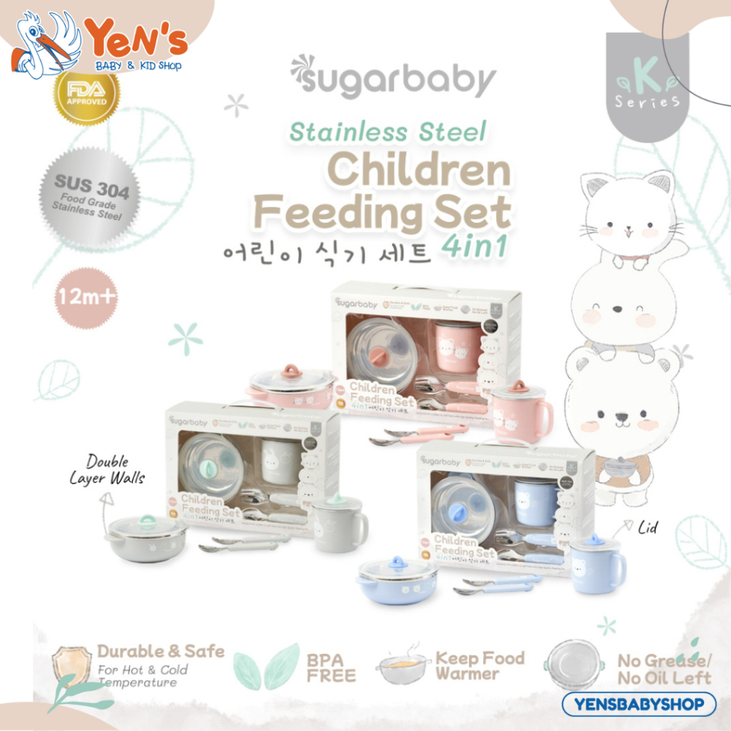 Sugarbaby Stainless Steel Children Feeding Set 4in1 (K-Series) | Set Alat Makan Bayi Perlengkapan MPASI