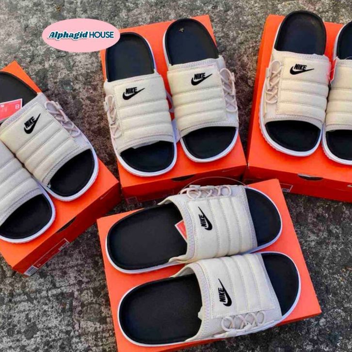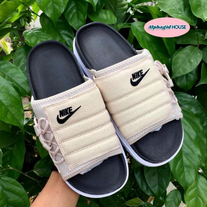 Nike Asuna Slide Cream Black Sandal Suede Unisex-100 Original Resmi
