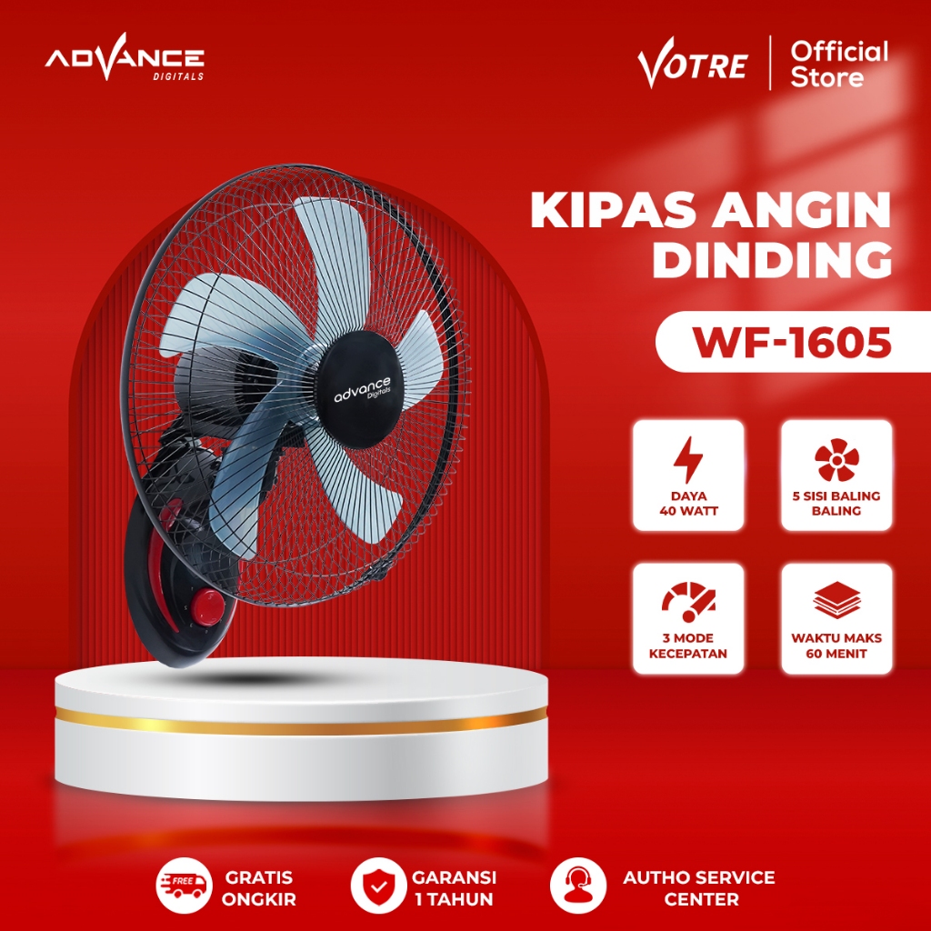 ADVANCE - Kipas Angin Dinding 5 Baling-Baling Stainless 18 Inch 80 Watt (WF-1835) Kipas Angin WF-16, WF-1605 dan Kipas Angin Karakter