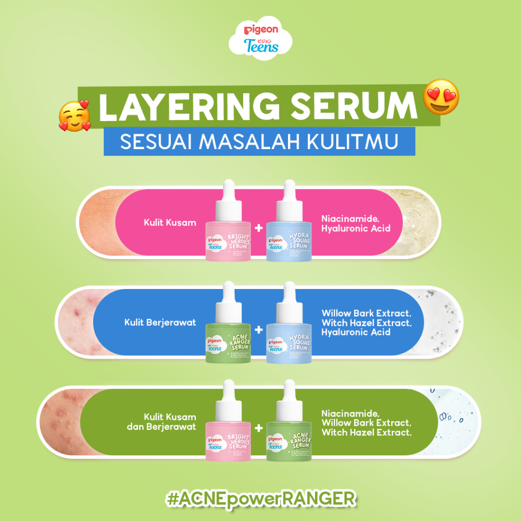 PIGEON TEENS ACNE RANGER SERUM| Serum Remaja untuk Kulit Berjerawat | 1 PERSEN Willowbark Extract | Witch Hazel Extract| Niaci