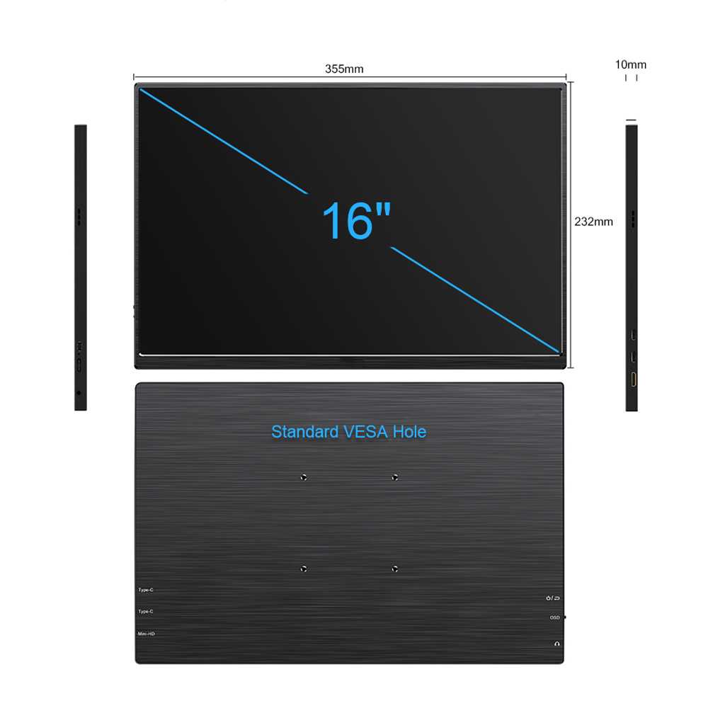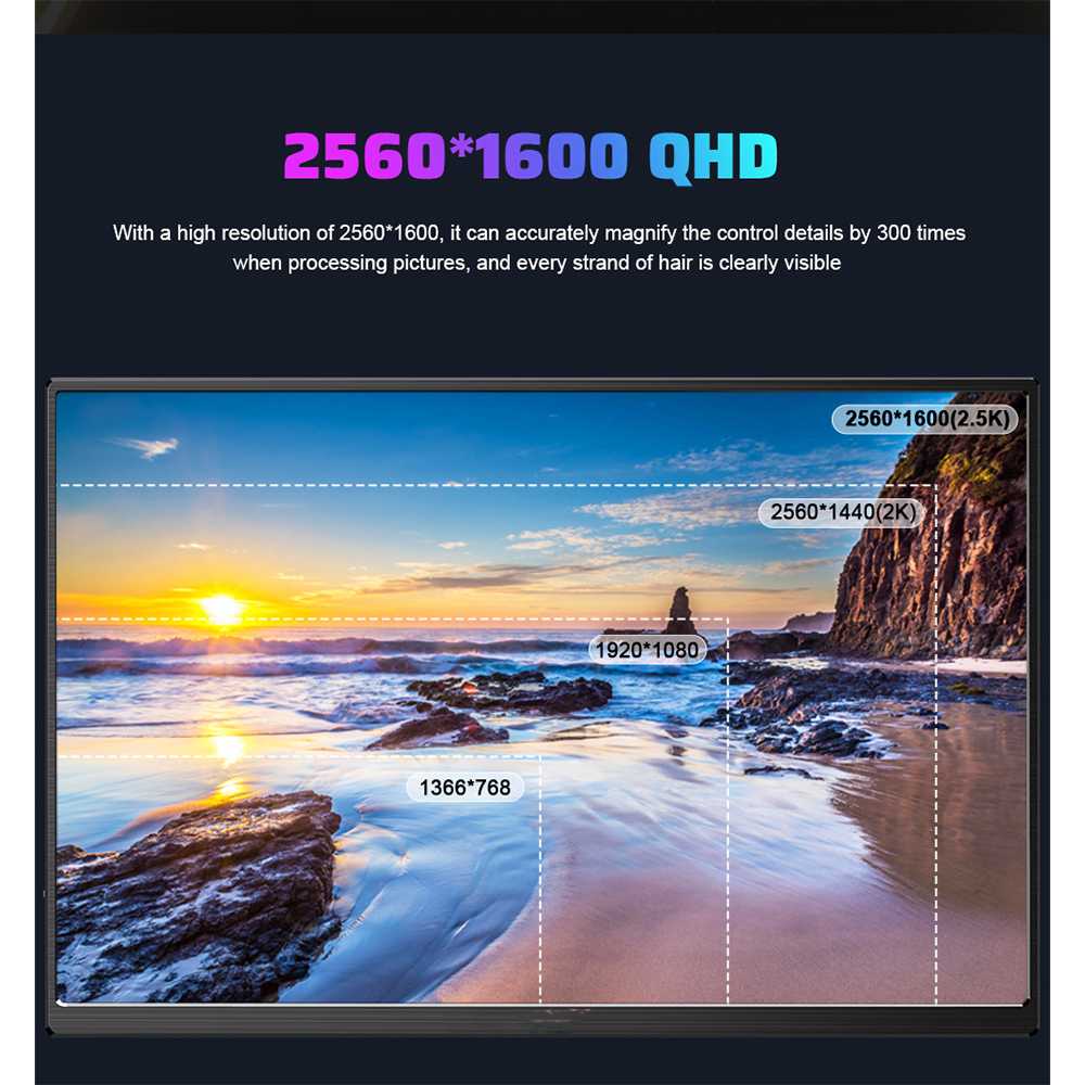 ZEUSLAP Portable Monitor 16 Inch 2.5K QHD IPS 60Hz HDR Wide Angle - 1600XTS