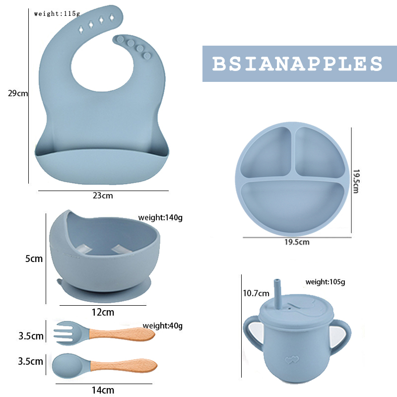 alat makan bayi alat makan silikon bebas drop proof tahan lama tempat makan bayi sendok garpu anak alat makan anak tahan