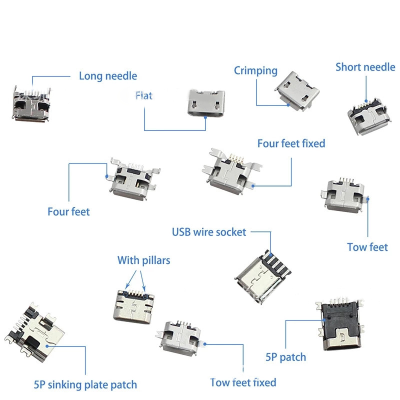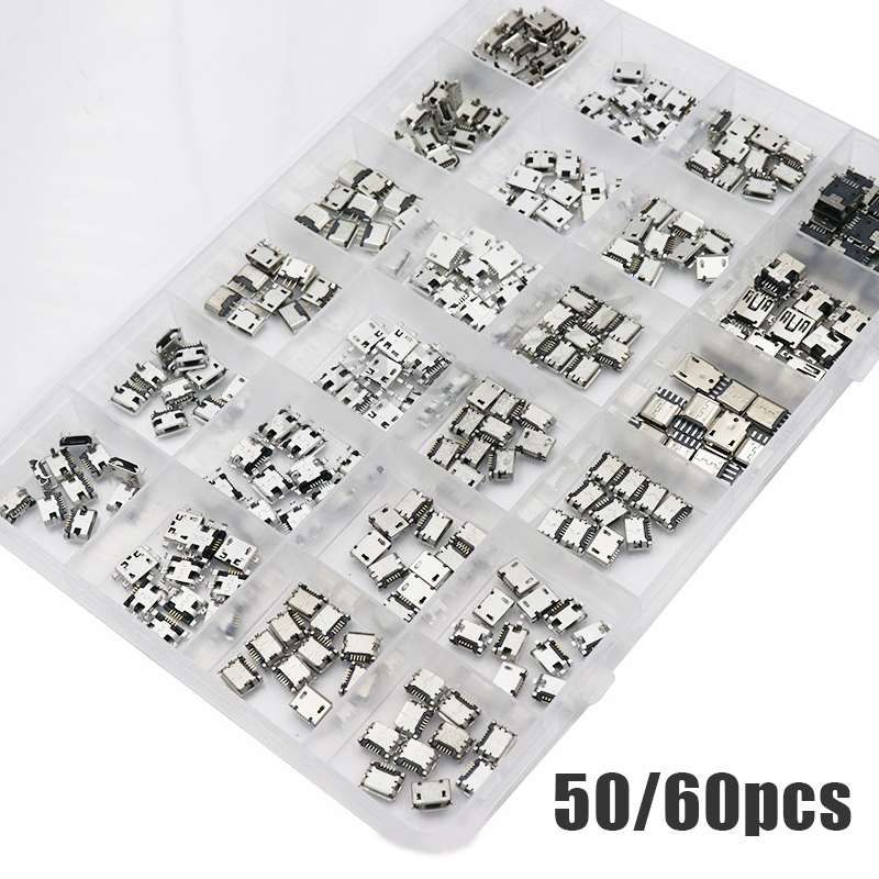 50/60pcs Female Universal Socket Conector Micro USB Soket Charger Konektor Conektor Charger HP USB 5 Port