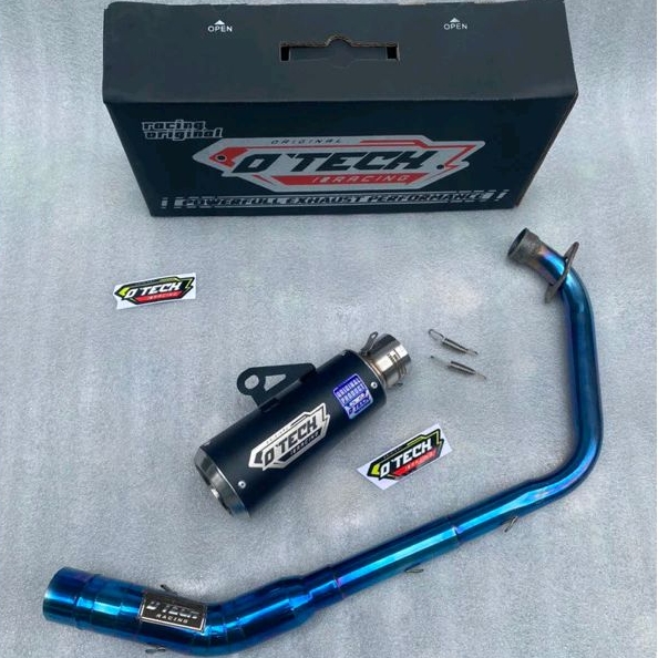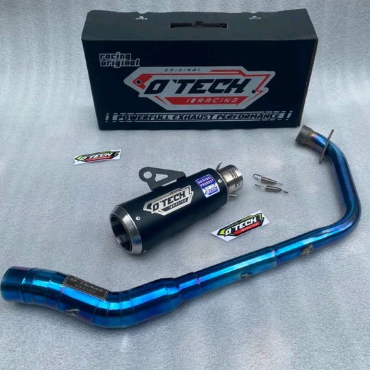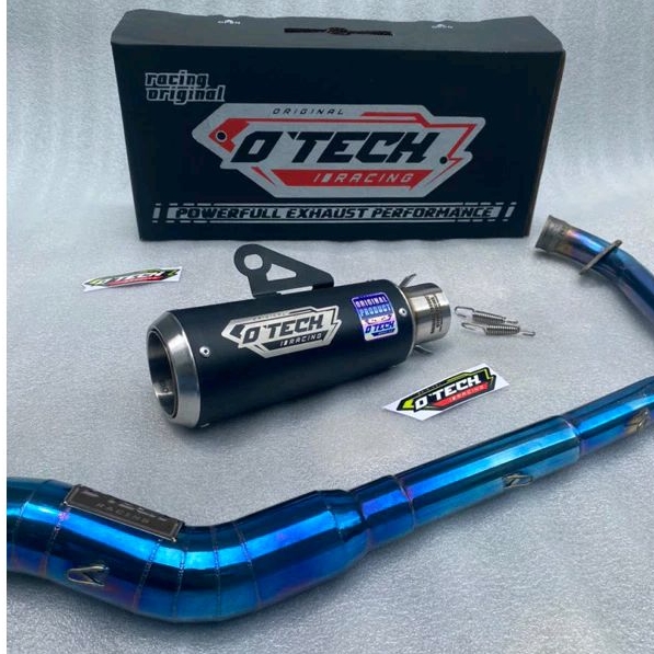 Knalpot Racing Original Otech Racing Short Blackdof Header Blue Fullset Satria Fu, Jupiter Mx, Mx King, Sonic Vixion
