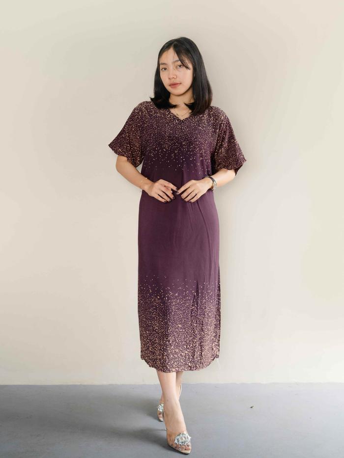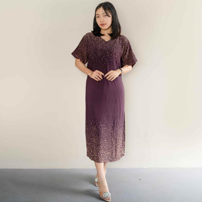 Daster Nadya Wanita Bahan Rayon Super Adem Busui Bumil Friendly Dress Katun Resleting Depan - ungu ALL SIZE
