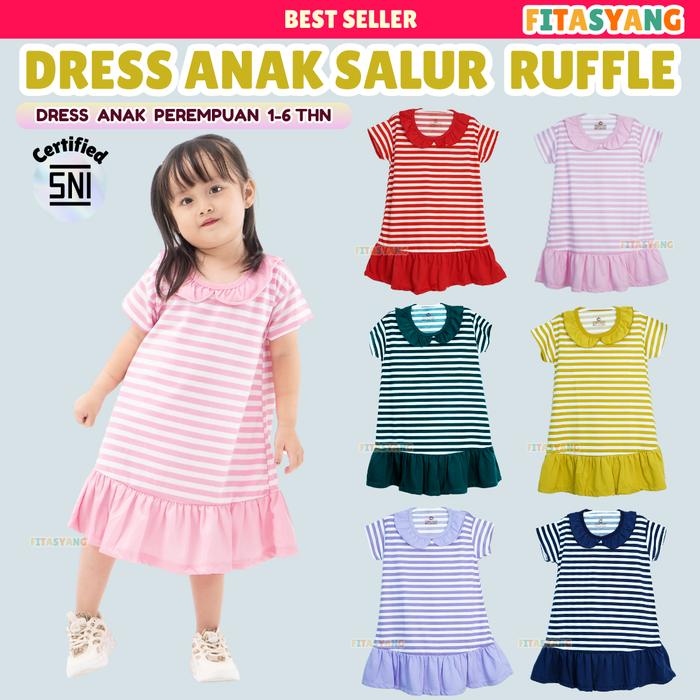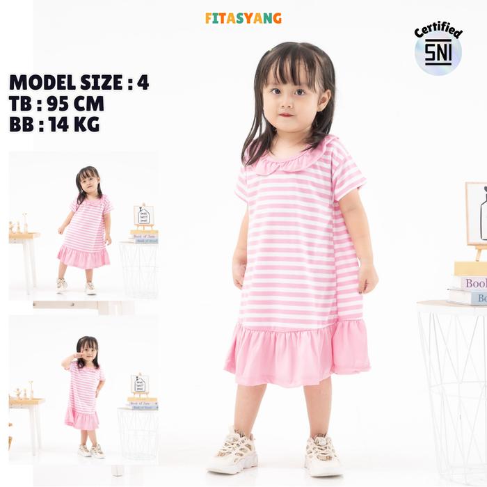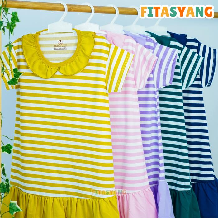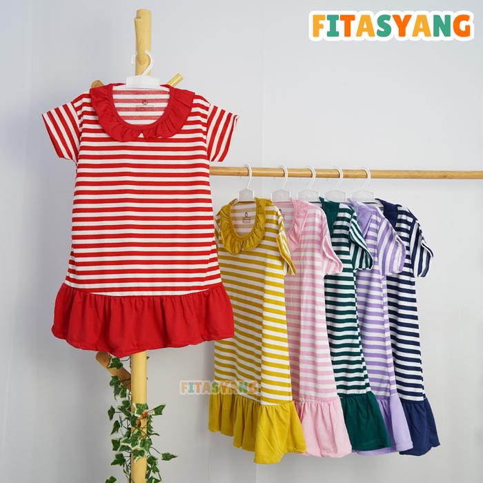 DRESS ANAK PEREMPUAN CEWEK 2-6 TAHUN DASTER ANAK - HARIN - Salur Komb Merah S (2)