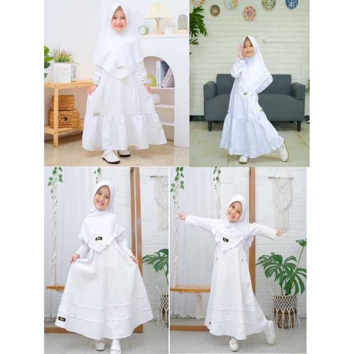 MURAH TERLARIS GAMIS ANAK PUTIH SET KRUDUNG GAMIS MANASIK ANAK 2 SAMPAI 12 TAHUN