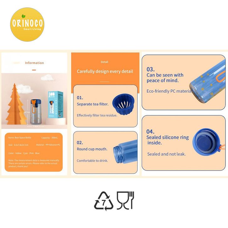 Orinoco Botol Minum Bear Space J-2400 Plastic Bottle 350ML
