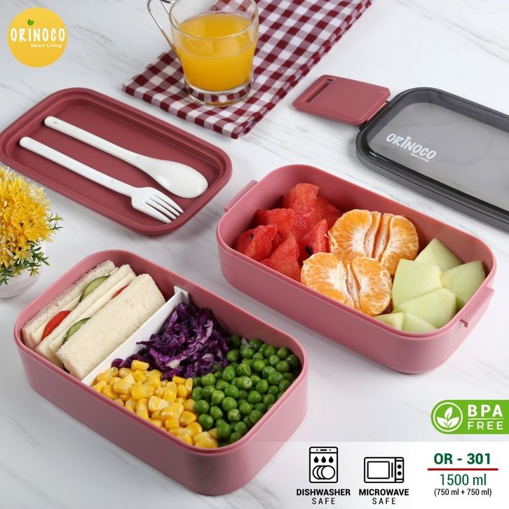 Orinoco Lunchbox Double-Layer Ukuran Besar 1500 ML Kotak Makan Ala Jepang 2 Susun - OR 301
