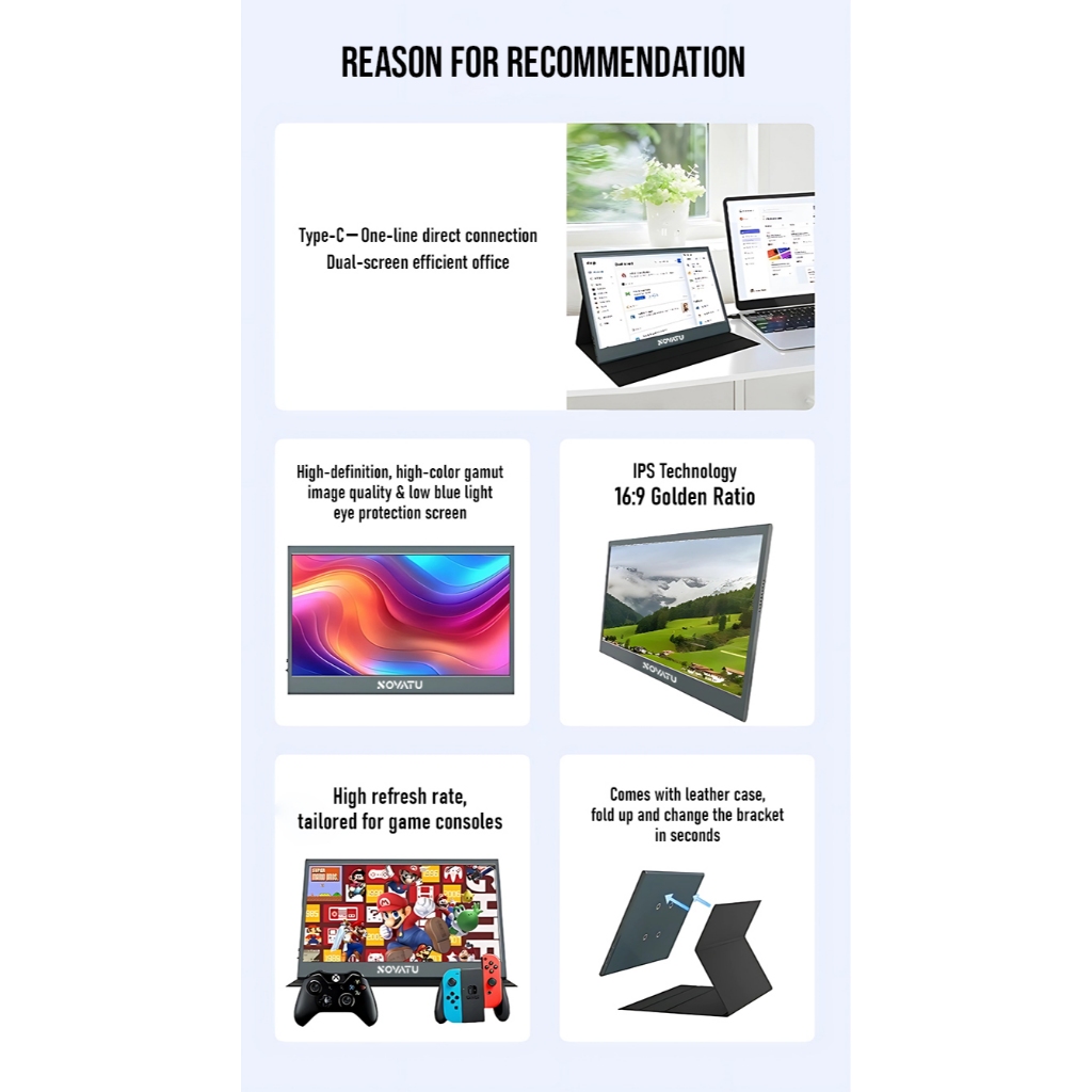 Monitor Portable Touch Screen Novatu 15,6" FHD 1080P IPS Portable Monitor for Office/Gaming support