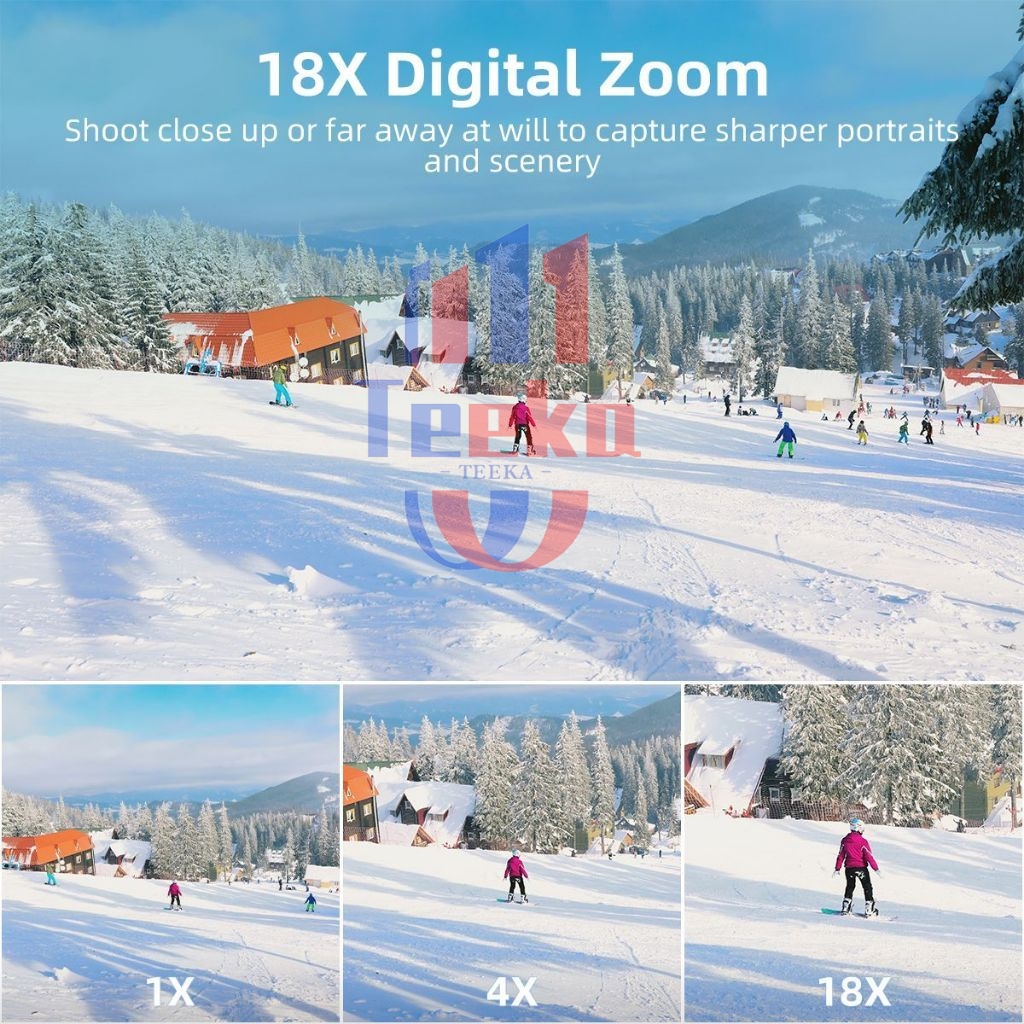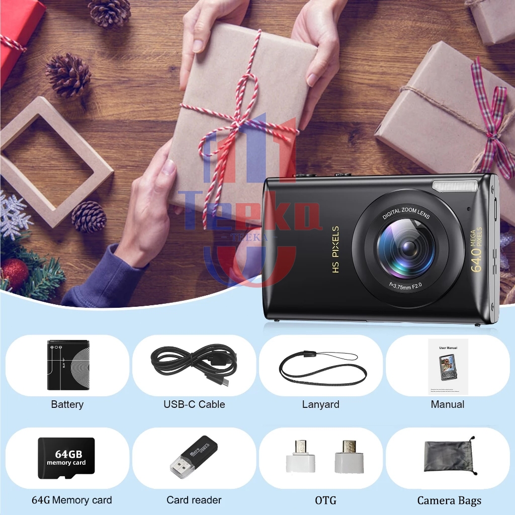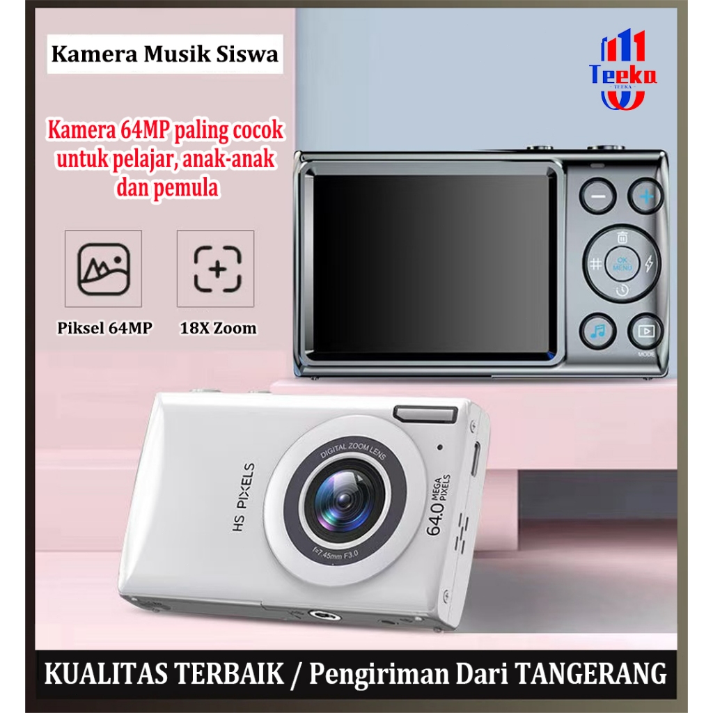 TEEKA 64MP Kamera Digital 4K Murah Dengan Zoom 18X Kamera 2.8" screen Dengan Anti Guncangan, Sempurna Untuk Vlogging, Pe