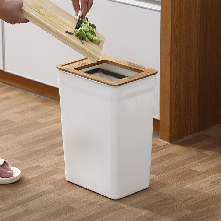 2pcs Tempat Sampah Putih Minimalis dengan Tutup Kayu Trash Bin - Tempat Sampah Aesthetic Estetik White