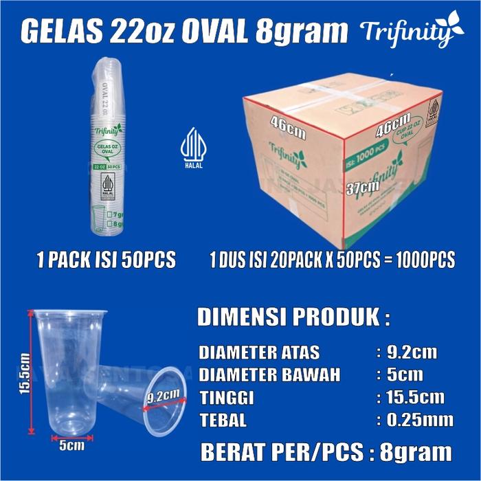 Gelas Oz HALAL Plastik Oval Tebal 12oz 14oz 16oz 18oz 22oz Datar Rata Pack Cup Murah Trifinity - Gelas Oval 12oz