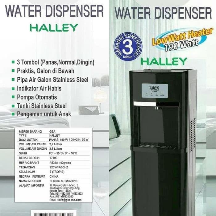 Dispenser GEA HALLEY Galon Bawah Kompressor Low Watt