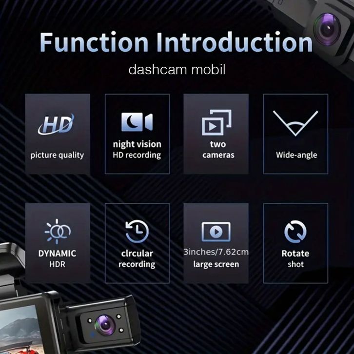Acroder Dashcam Mobil 1080P HD WiFi Perekaman Loop 24 Jam Pemantauan Parkir 2 Cameras