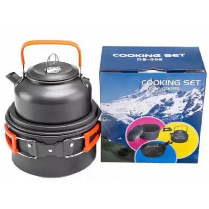Alat Masak Camping DS-308 ds308 kemping Outdoor Cooking Set Nesting Outdoor Plus Teko 1,1 Liter Piknik Hiking Nesting