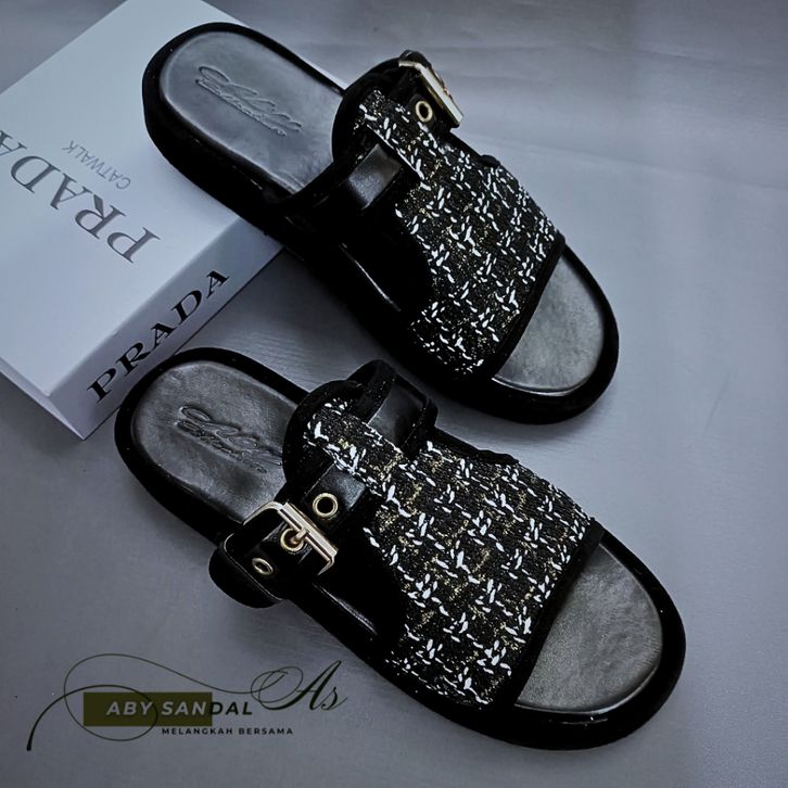 SANDAL PLATFORM WANITA TALI GESPER MOTIF RAJUT KEKINIAN MURAH KUALITAS TERJAMIN