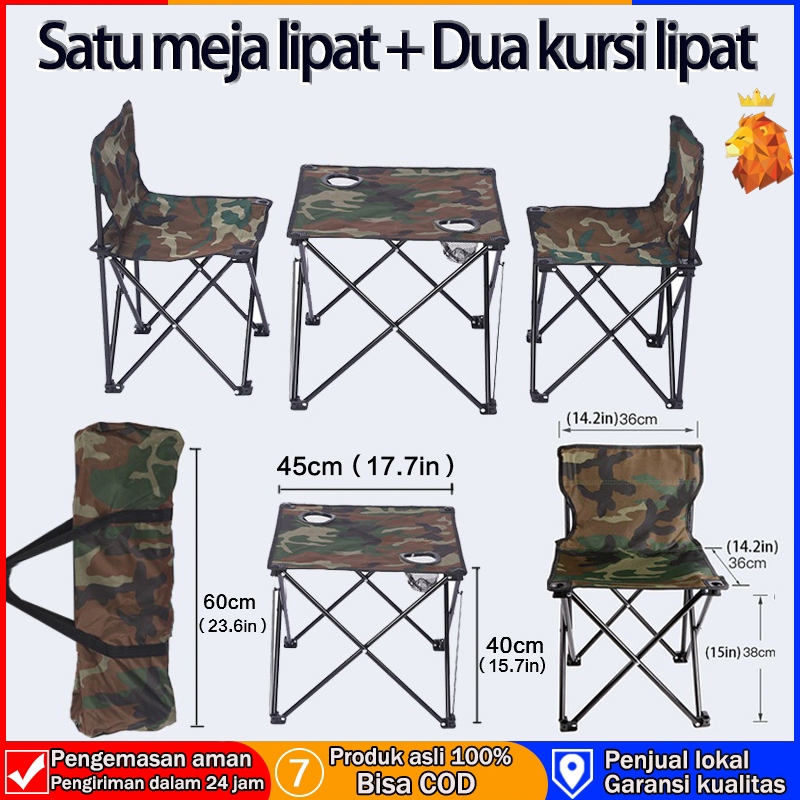 SET MEJA LIPAT CAMPING+2 KURSI PORTABLE BAJA KARBON TINGGI OUTDOOR RINGKAS & PRAKTIS 1 MEJA+2 KURSI