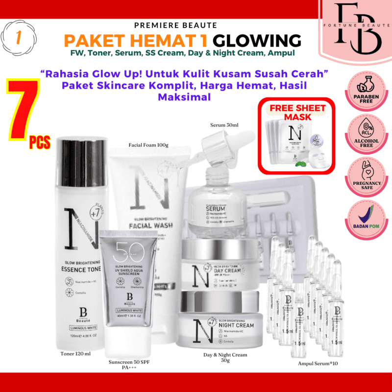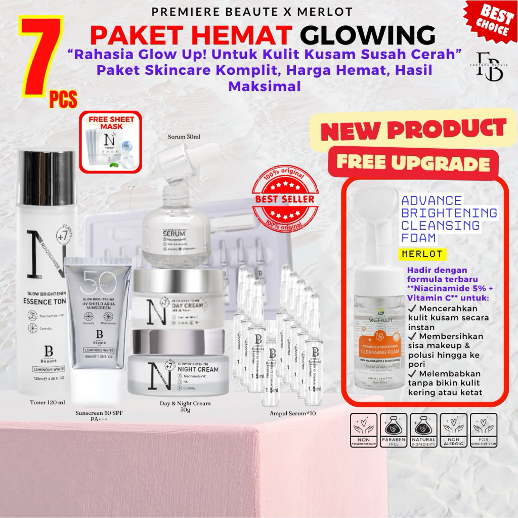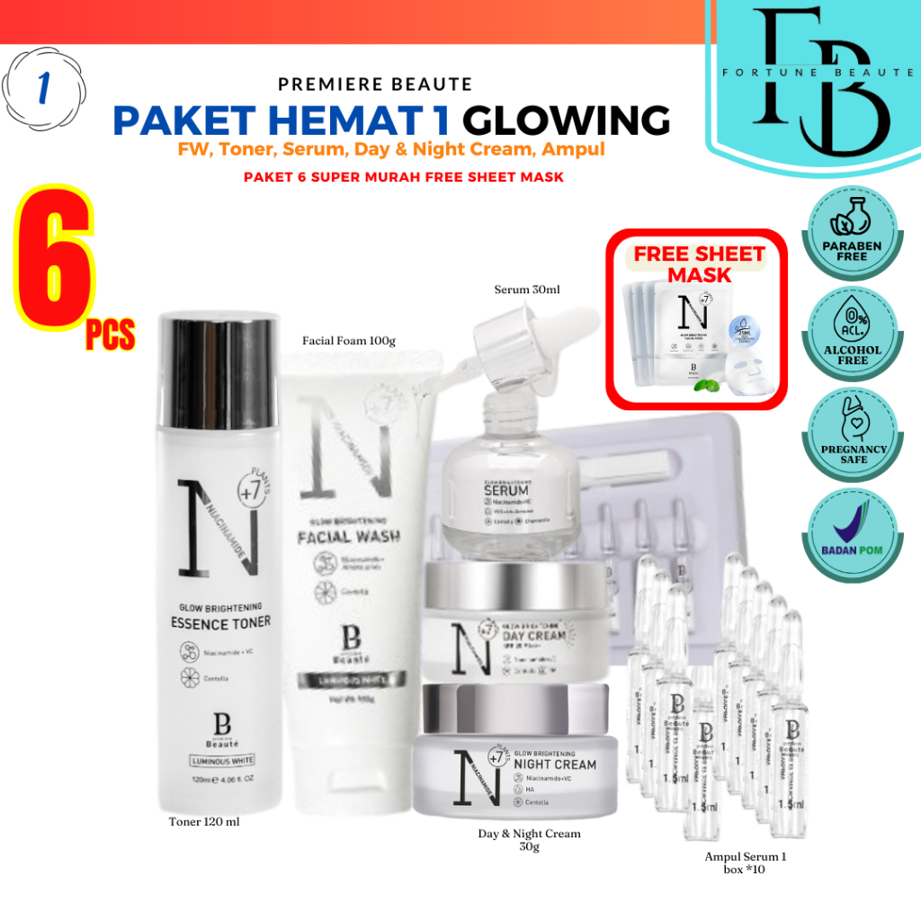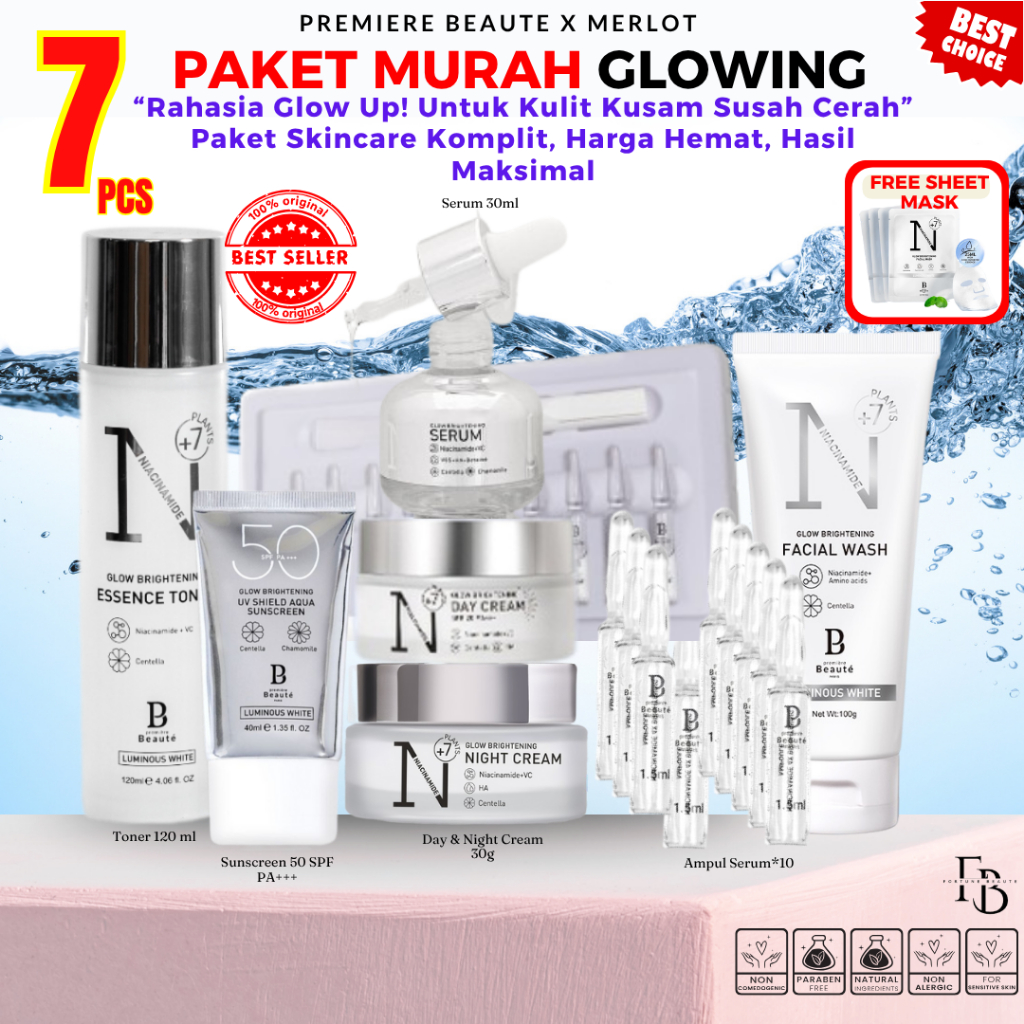 BUNDLE PACKAGE RAHASIA KULIT SEHAT HARGA HEMAT MURAH MERIAH FREE SHEET MASK PREMIERE BEAUTE LUMINOUS WHITE GLOW SERIES M