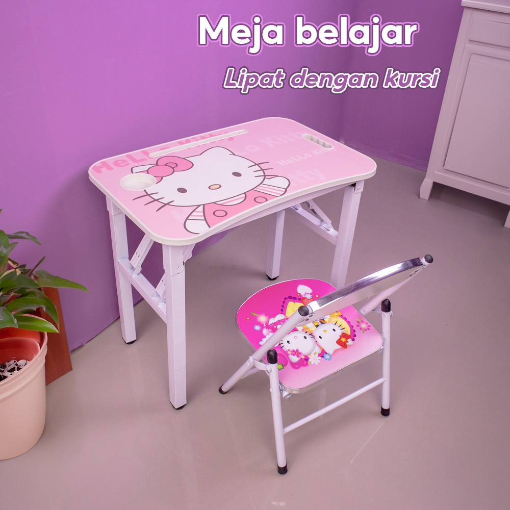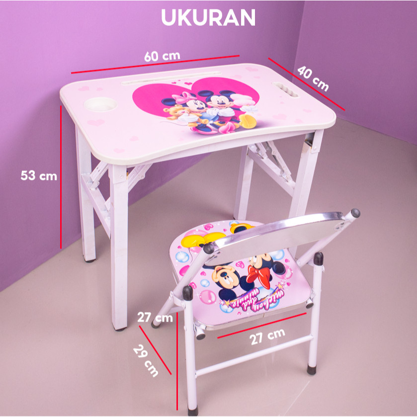 TOPSMILE - SET MEJA LAPTOP BELAJAR PORTABEL ANAK DAPAT DILIPAT DENGAN KURSI MOTIF KARTUN LUCU