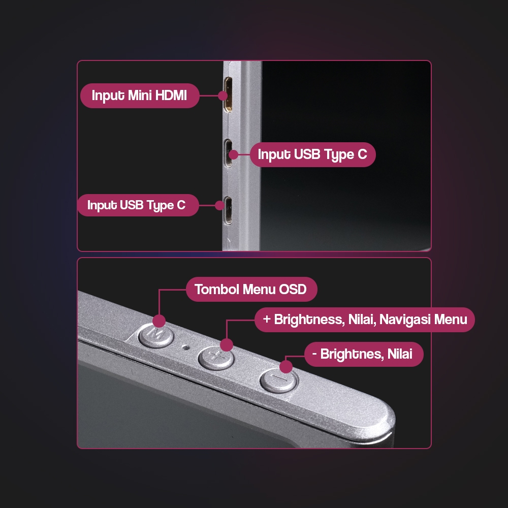 Portable Monitor Dual Screen Layar Extender 14 Inch IPS FHD 60Hz 1080P s1lverr S1 Aibecy